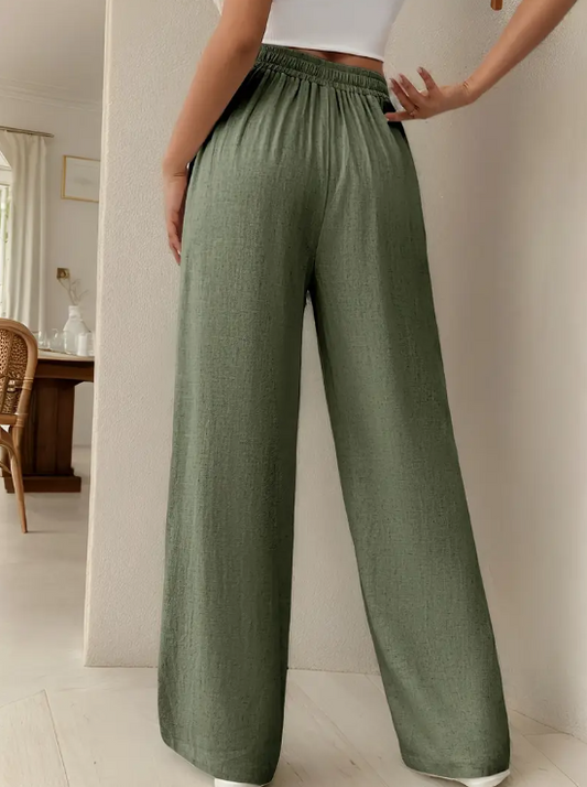 HauteZen™ – Pantalon Femme Taille Haute Large & Fluide, Confort Chic Été
