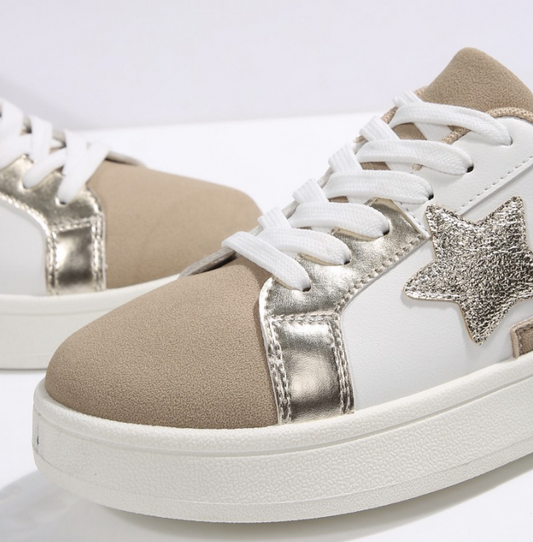Cassy™ – Baskets Femme Élégantes avec Étoile Dorée et Paillettes Brillantes